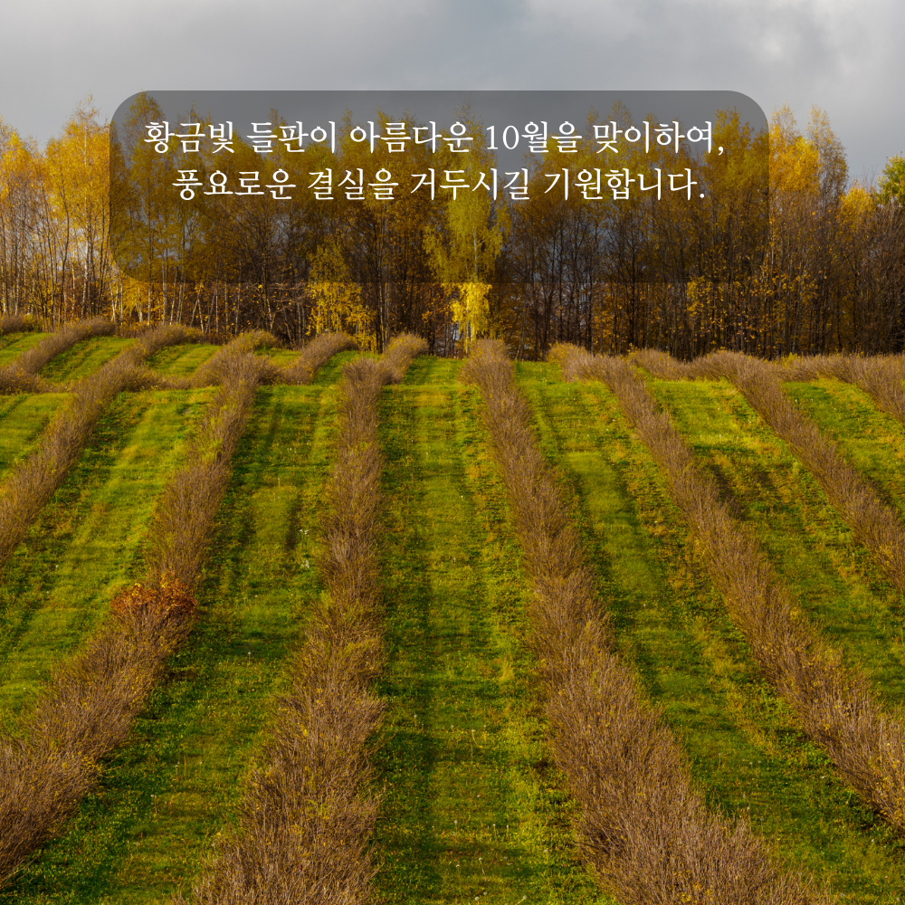 2. 황금빛 들판이 아름다운 10월을 맞이하여, 풍요로운 결실을 거두시길 기원합니다.