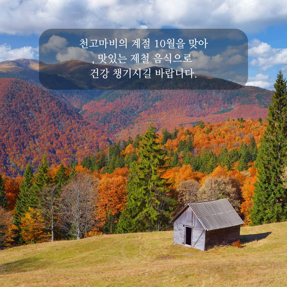 15. 천고마비의 계절 10월을 맞아 , 맛있는 제철 음식으로 건강 챙기시길 바랍니다.