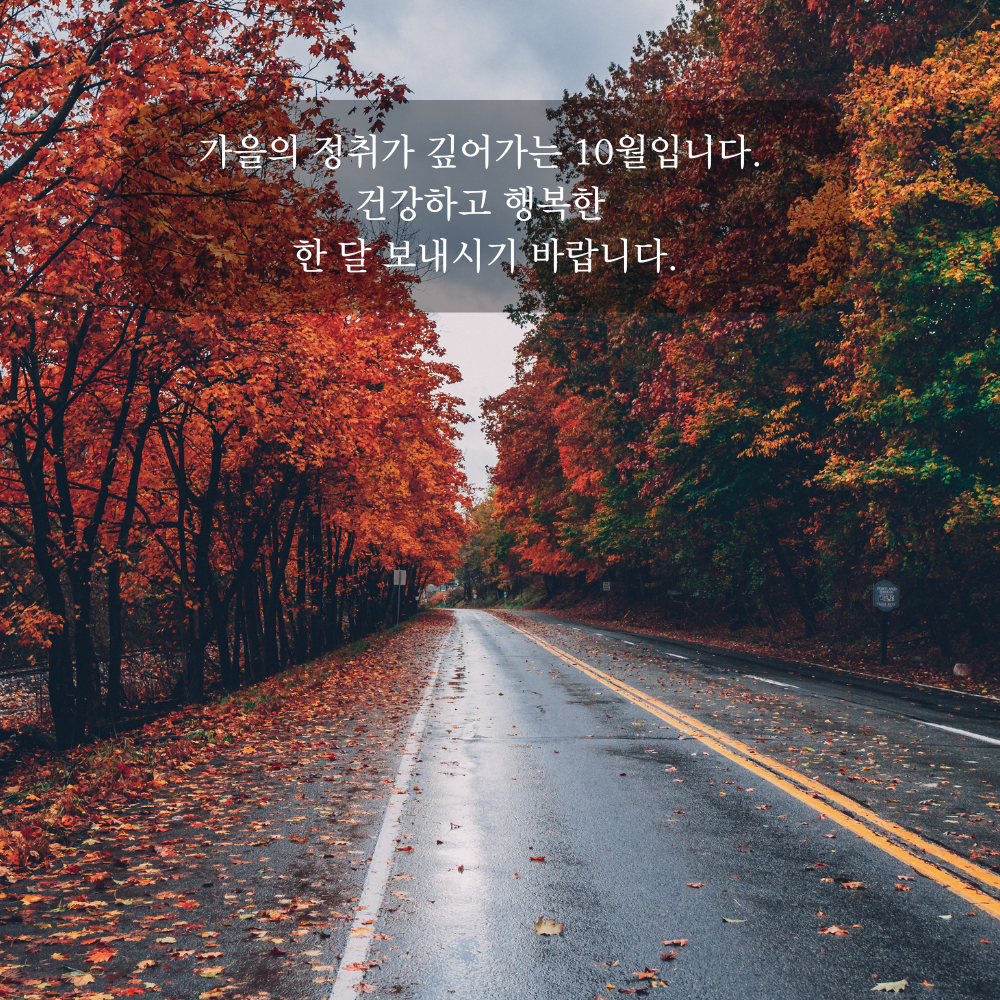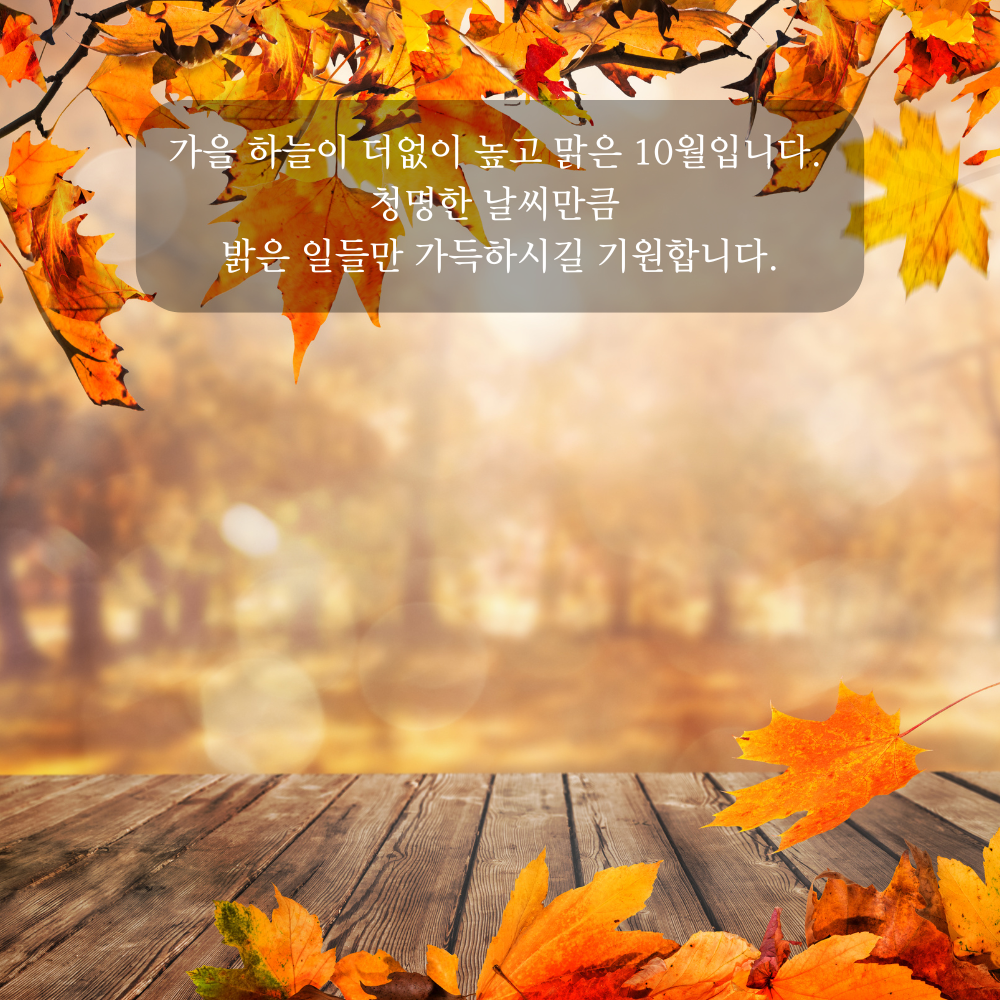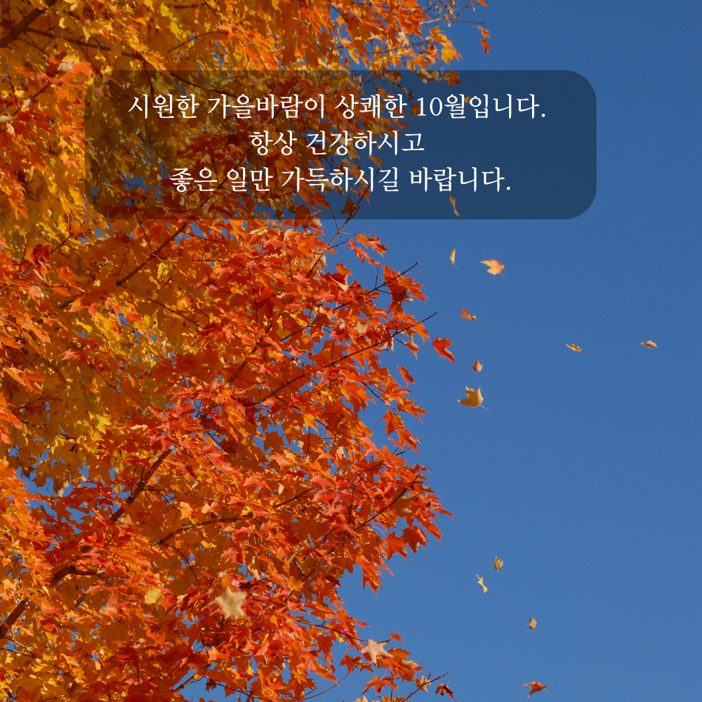 1. 가을의 정취가 깊어가는 10월입니다. 건강하고 행복한 한 달 보내시기 바랍니다.