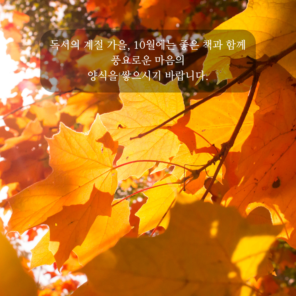 12. 독서의 계절 가을, 10월에는 좋은 책과 함께 풍요로운 마음의 양식을 쌓으시기 바랍니다.