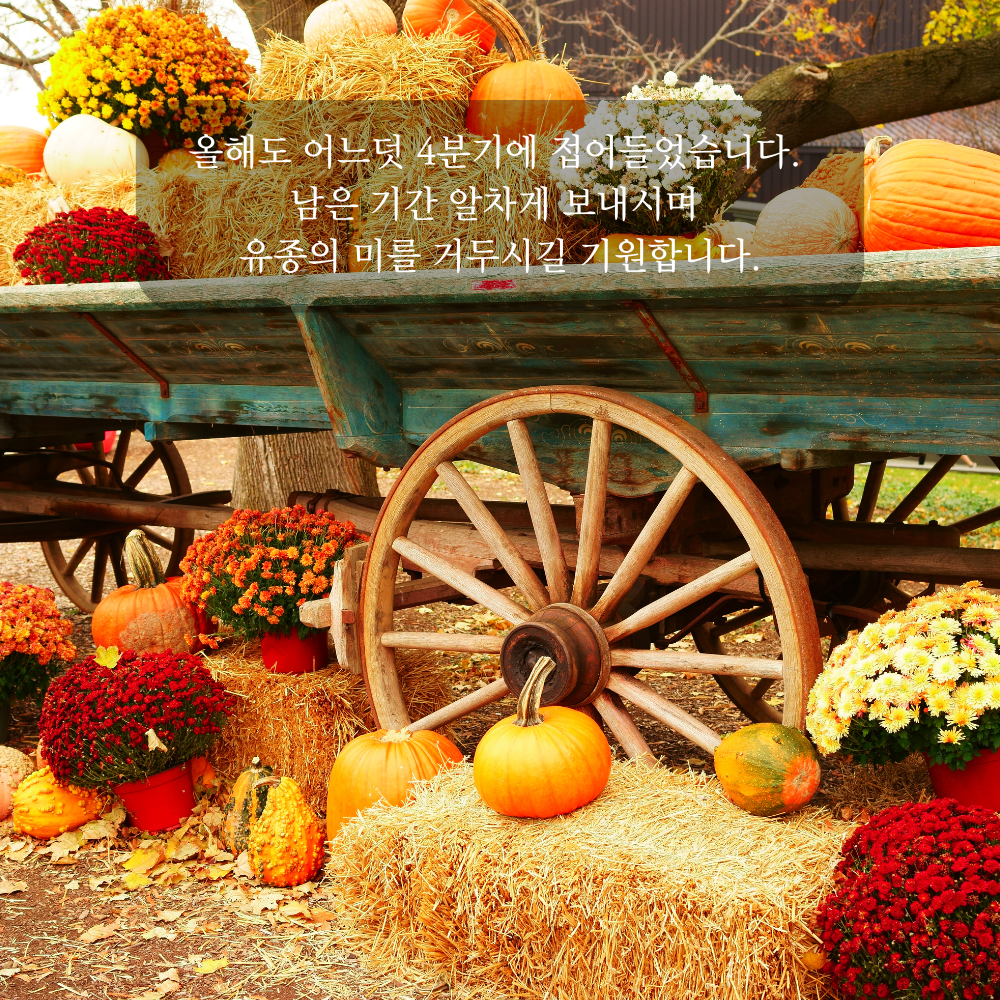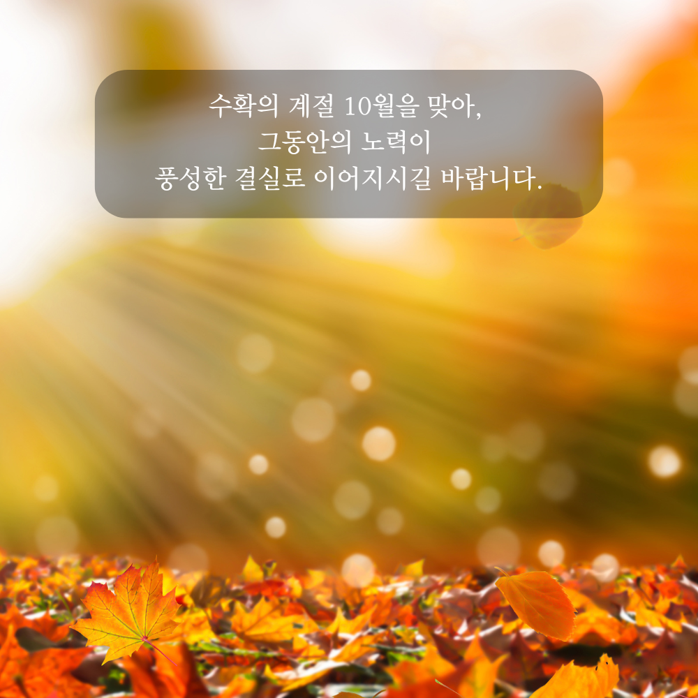 8. 수확의 계절 10월을 맞아, 그동안의 노력이 풍성한 결실로 이어지시길 바랍니다.