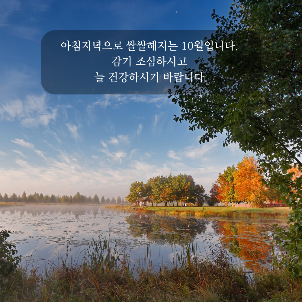 11. 선선한 날씨가 기분 좋은 10월입니다. 야외 활동 즐기시며 건강 챙기시기 바랍니다.