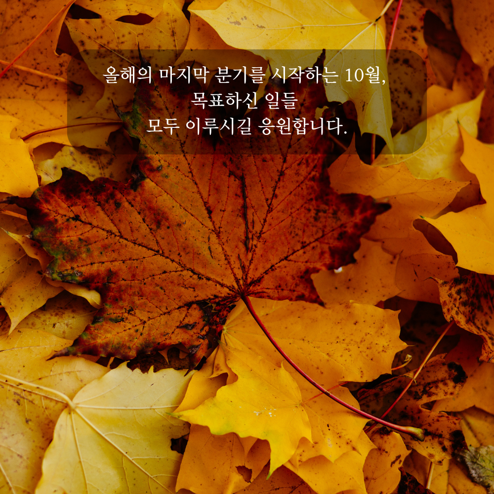 10. 올해의 마지막 분기를 시작하는 10월, 목표하신 일들 모두 이루시길 응원합니다.