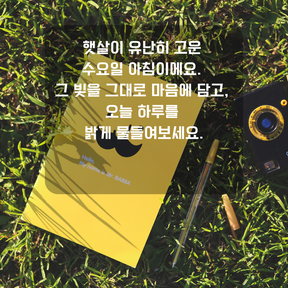 14. 햇살이 유난히 고운 수요일 아침이에요. 그 빛을 그대로 마음에 담고, 오늘 하루를 밝게 물들여보세요.