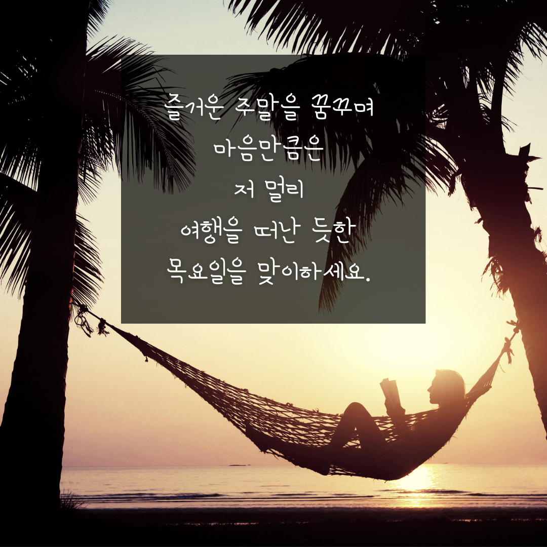 5. 즐거운 주말을 꿈꾸며 마음만큼은 저 멀리 여행을 떠난 듯한 목요일을 맞이하세요.