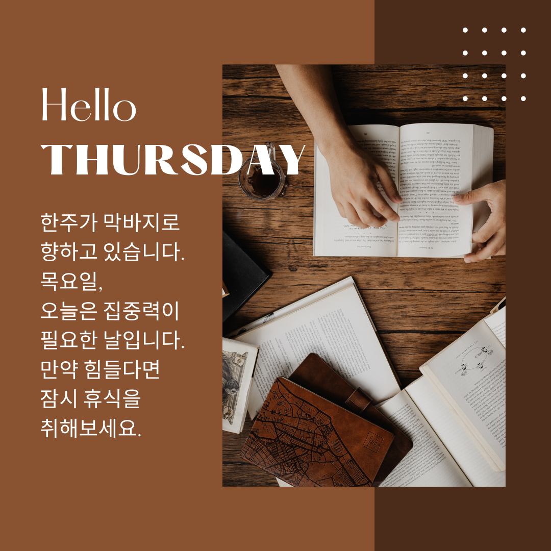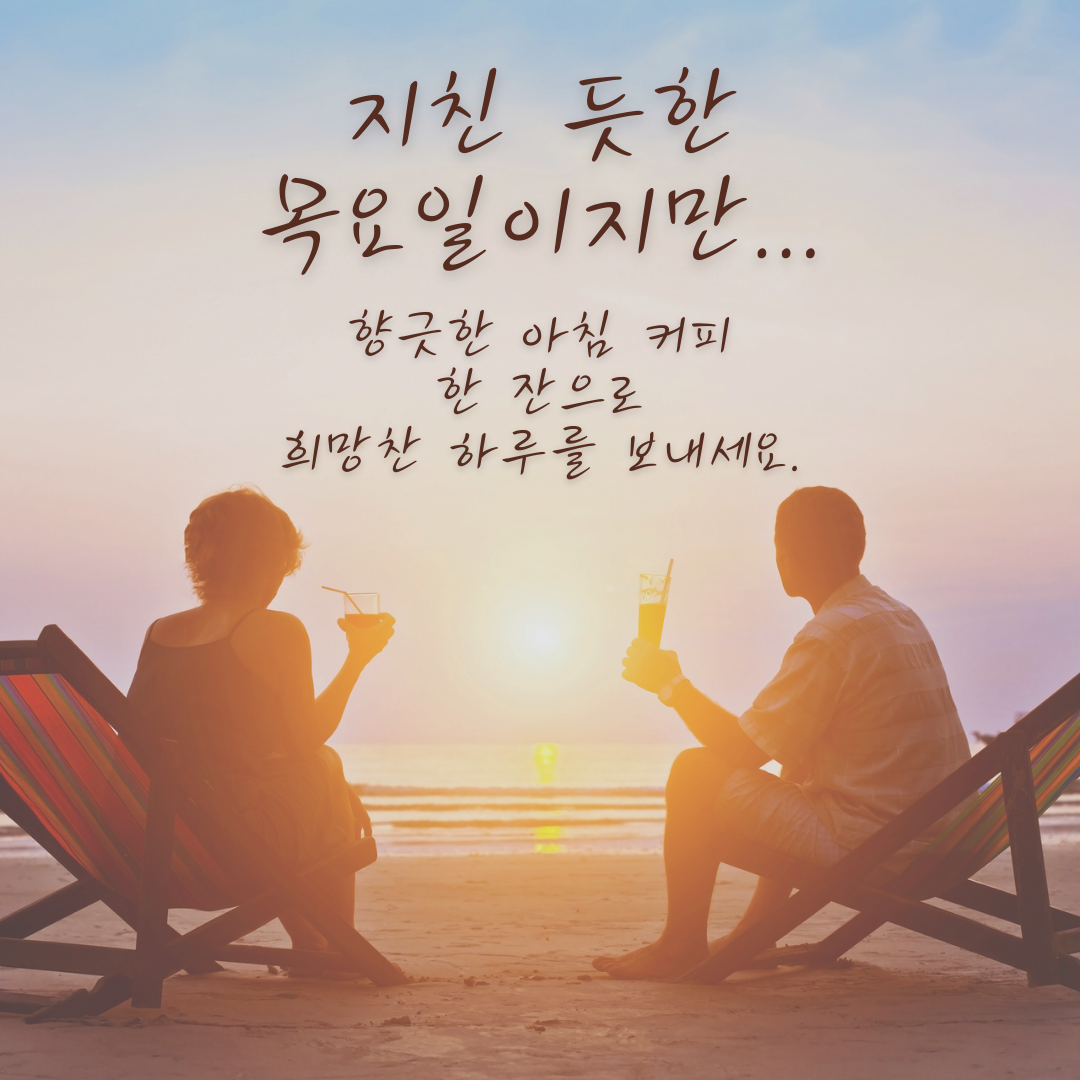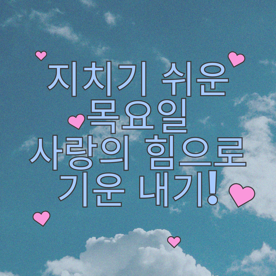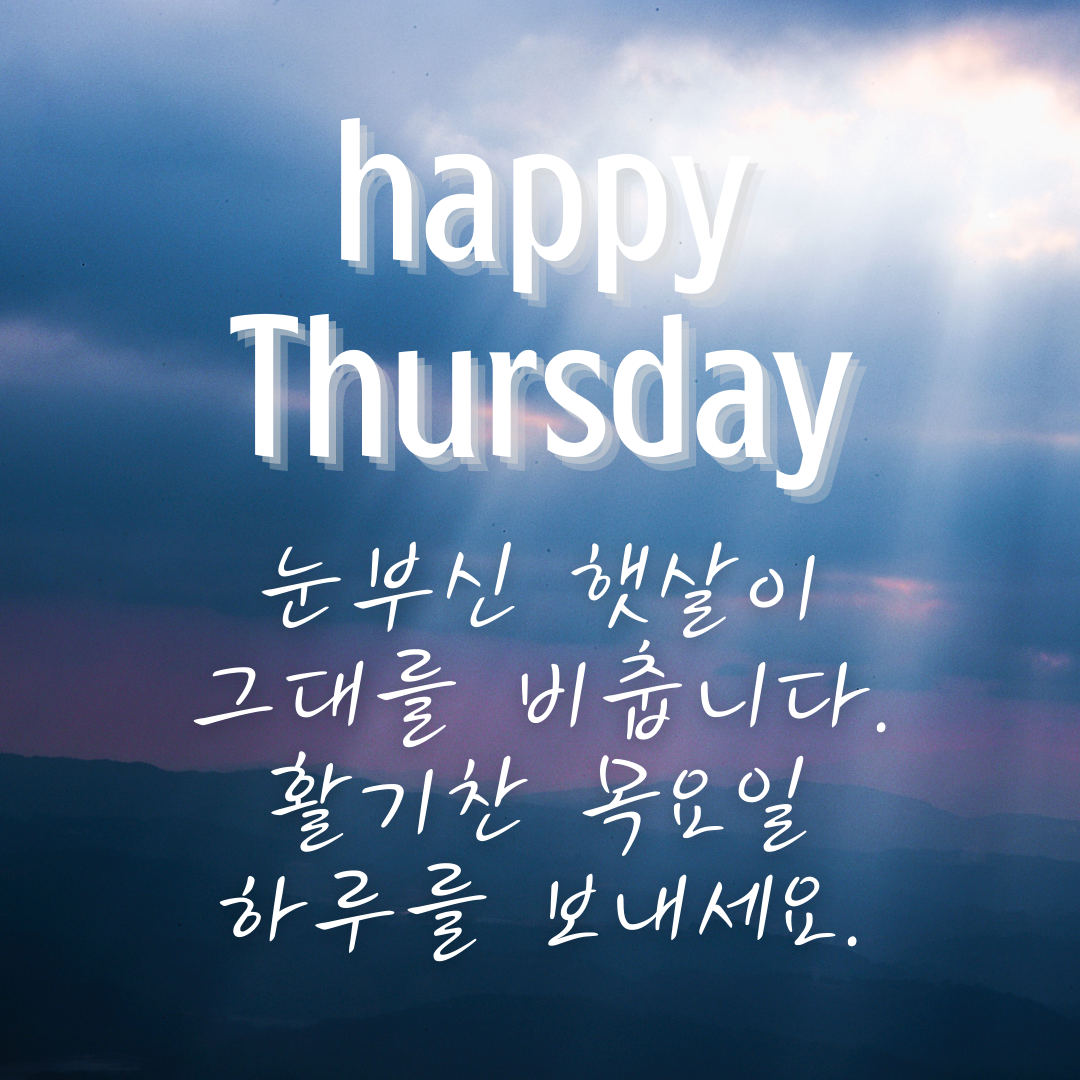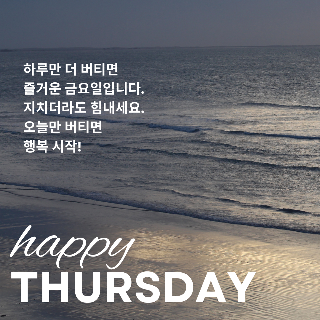 오늘은 목요일, 힘든 요일이죠? 지치기도 하고... 그런데 또 다음 날이 금요일이니 희망이 보이는 요일입니다. 목요일 아침 인사말 문구를 정리해 보았어요. 지친 시기 힘이 날 수 있도록 기운을 돋아주는 목요일 아침 인사말 문구와 이미지를 공유하면서 서로 격려해 보아요 ~