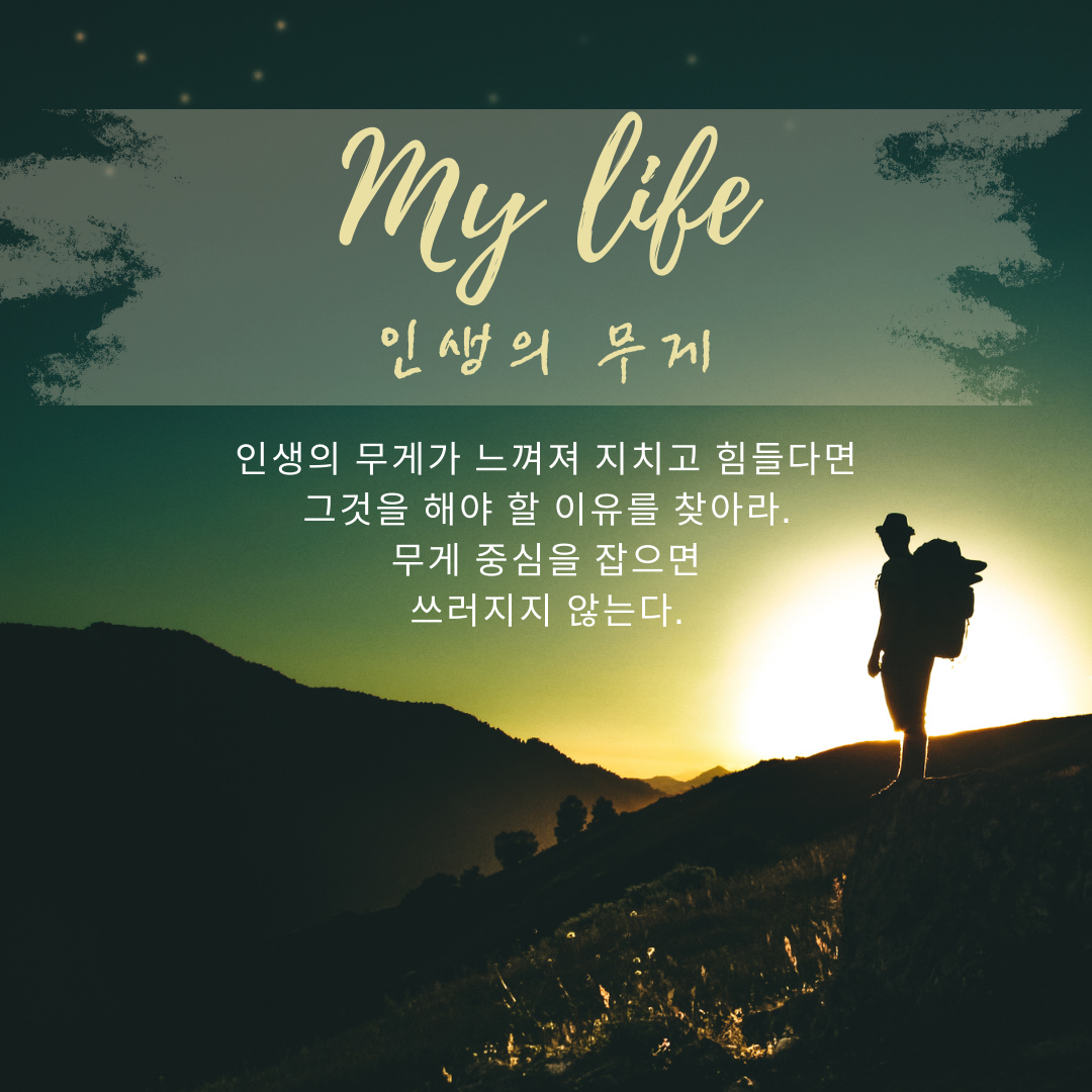 2. 인생의 무게가 느껴져 지치고 힘들다면 그것을 해야 할 이유를 찾아라. 무게 중심을 잡으면 쓰러지지 않는다.