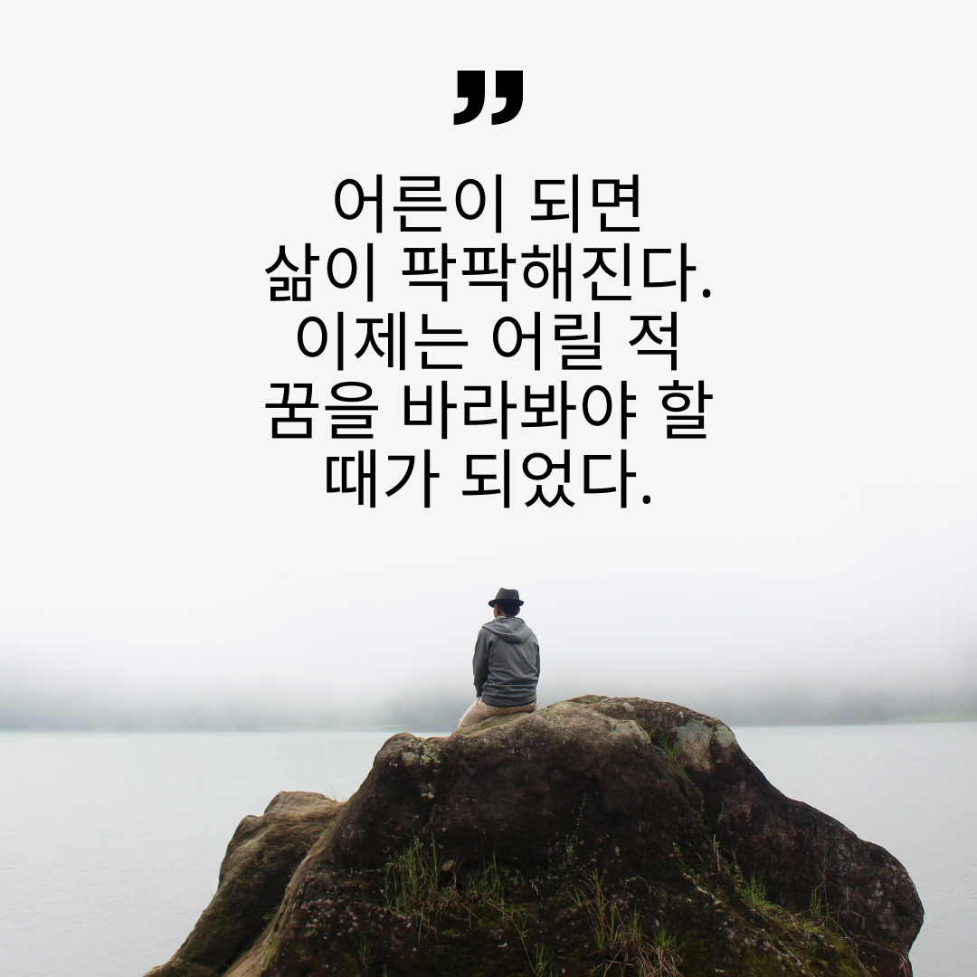 1. 어른이 되면 삶이 팍팍해진다. 이제는 어릴 적 꿈을 바라봐야 할 때가 되었다.