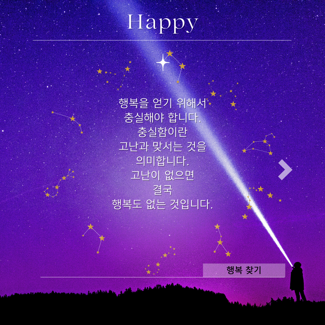 5. 행복을 얻기 위해서 충실해야 합니다. 충실함이란 고난과 맞서는 것을 의미합니다. 고난이 없으면 결국 행복도 없는 것입니다.