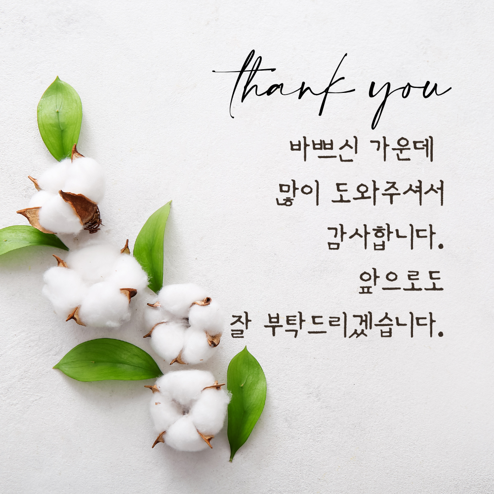 사랑은 나누면 배가 된다고 합니다. 고마운 마음 역시 잘 전달하면 기쁨과 행복이 더 커지겠죠? 감사한 마음 전달하면서 더 좋은 인연을 만들어 가시길 바라겠습니다.
