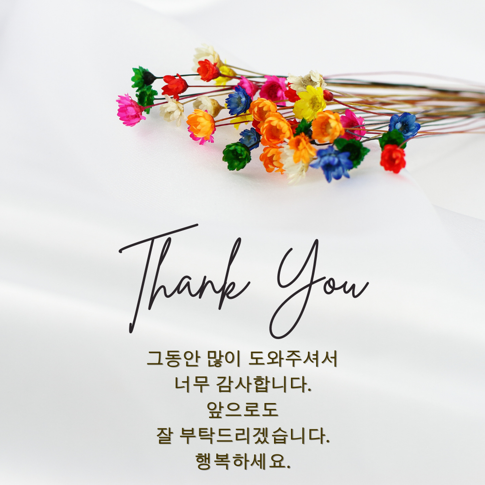 8. 그동안 많이 도와주셔서 너무 감사합니다. 앞으로도 잘 부탁드리겠습니다. 행복하세요.