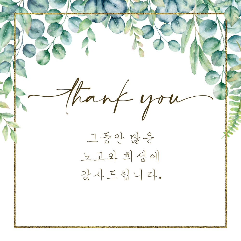 9. 그동안 많은 노고와 희생에 감사드립니다.