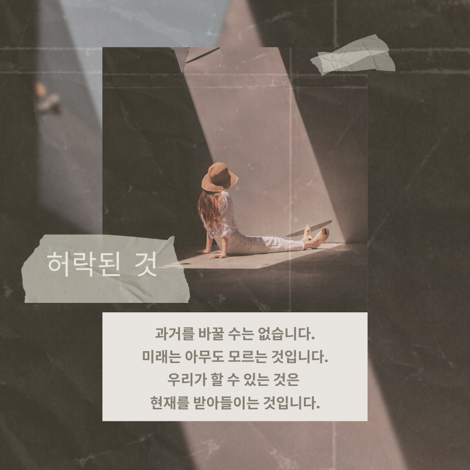- 과거를 바꿀 수는 없습니다. 미래는 아무도 모르는 것입니다. 우리가 할 수 있는 것은 현재를 받아들이는 것입니다.