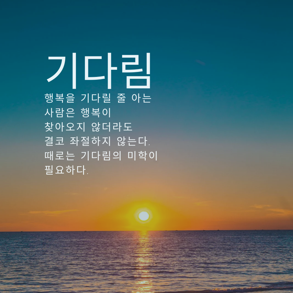 - 행복을 기다릴 줄 아는 사람은 행복이 찾아오지 않더라도 결코 좌절하지 않는다. 때로는 기다림의 미학이 필요하다.