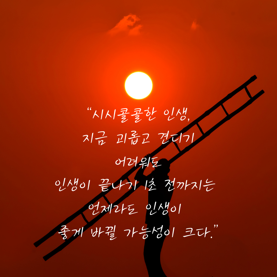 - 시시콜콜한 인생, 지금 괴롭고 견디기 어려워도 인생이 끝나기 1초 전까지는 언제라도 인생이 좋게 바뀔 가능성이 크다.