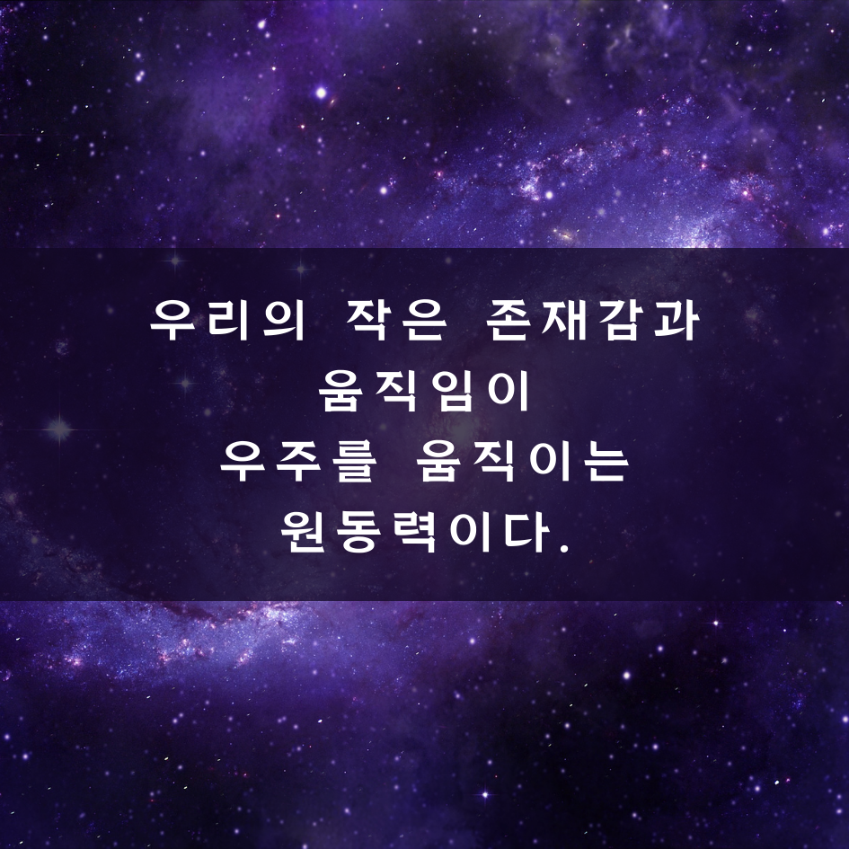- 우리의 작은 존재감과 움직임이 우주를 움직이는 원동력이다.