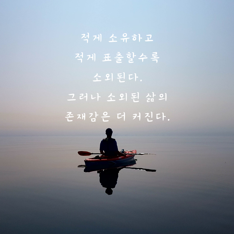 - 적게 소유하고 적게 표출할수록 소외된다. 그러나 소외된 삶의 존재감은 더 커진다.