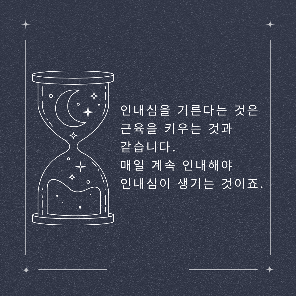7. 인내심을 기른다는 것은 근육을 키우는 것과 같습니다. 매일 계속 인내해야 인내심이 생기는 것이죠.