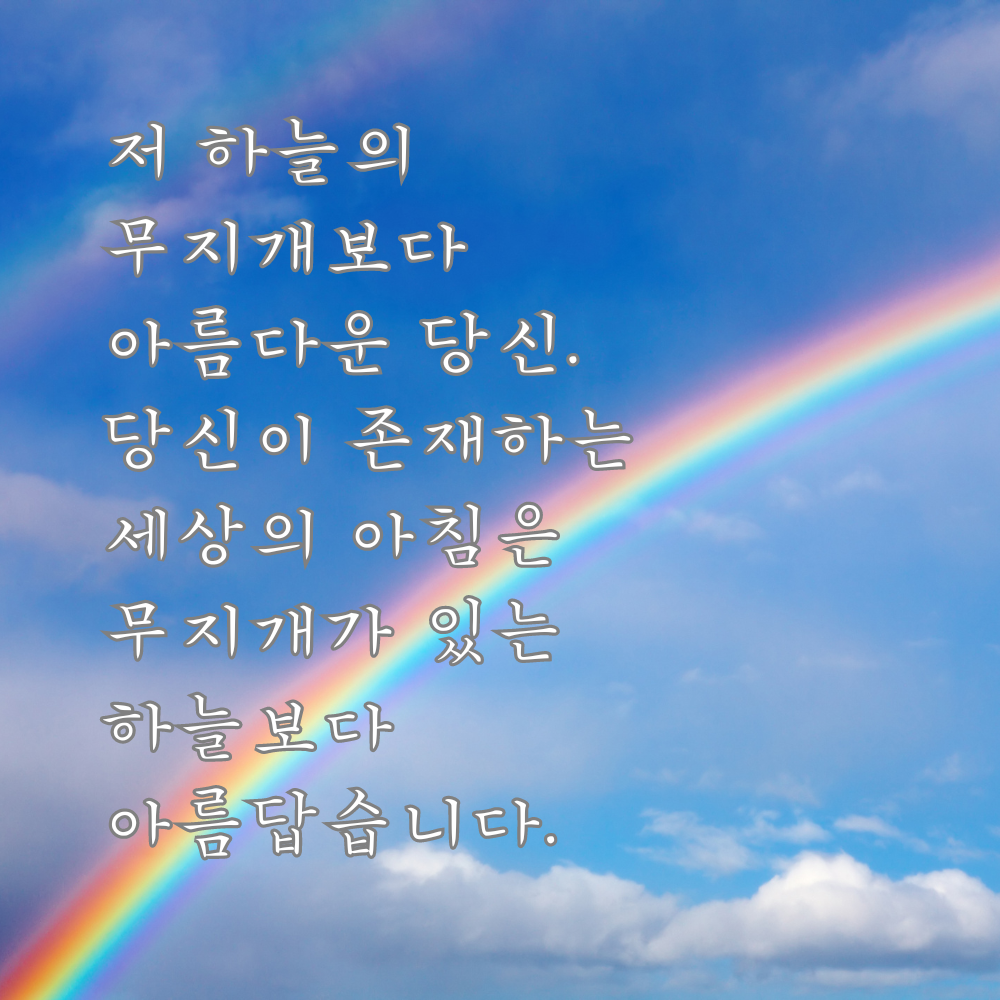 9. 저 하늘의 무지개보다 아름다운 당신. 당신이 존재하는 세상의 아침은 무지개가 있는 하늘보다 아름답습니다.