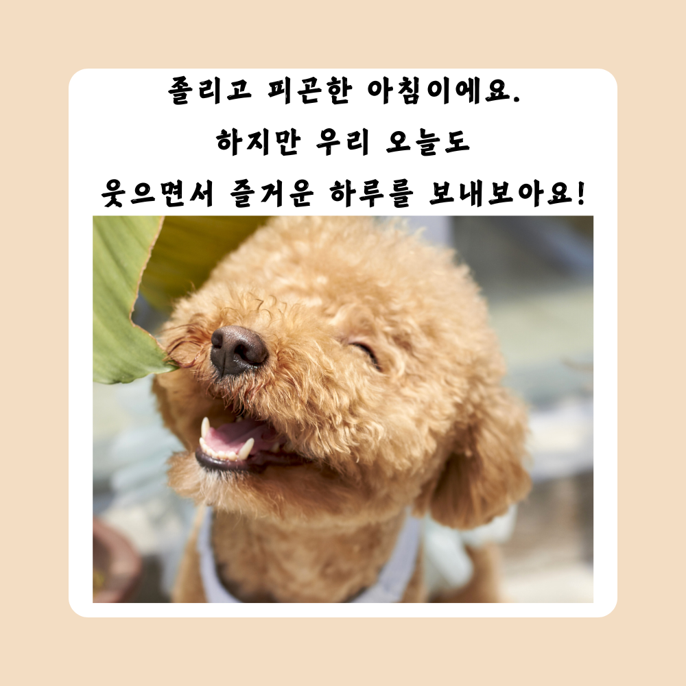 10. 졸리고 피곤한 아침이에요. 하지만 우리 오늘도 웃으면서 즐거운 하루를 보내보아요!