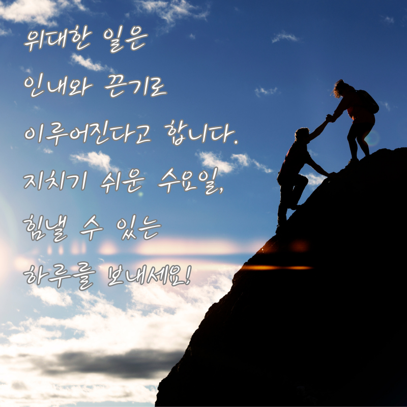 9. 위대한 일은 인내와 끈기로 이루어진다고 합니다. 지치기 쉬운 수요일, 힘낼 수 있는 하루를 보내세요!