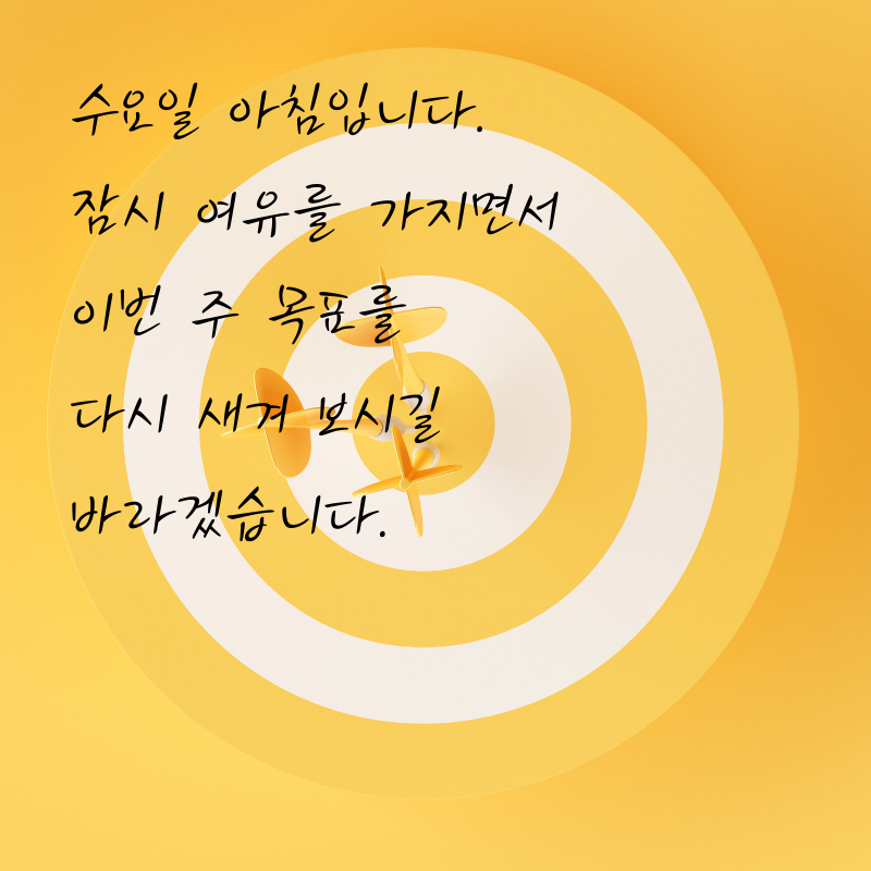 5. 수요일 아침입니다. 잠시 여유를 가지면서 이번 주 목표를 다시 새겨 보시길 바라겠습니다.