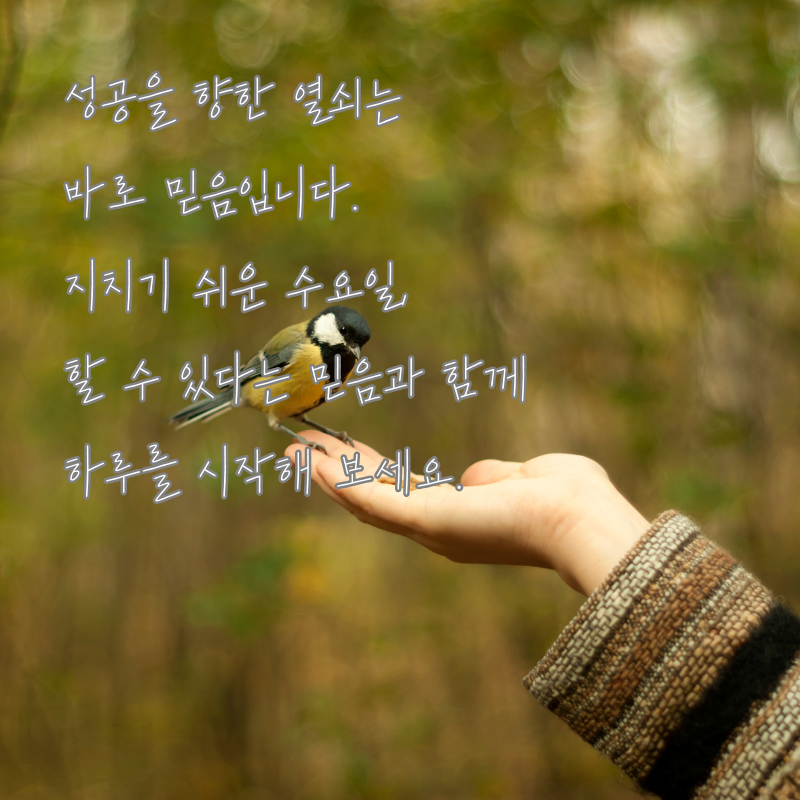 3. 성공을 향한 열쇠는 바로 믿음입니다. 지치기 쉬운 수요일, 할 수 있다는 믿음과 함께 하루를 시작해 보세요.