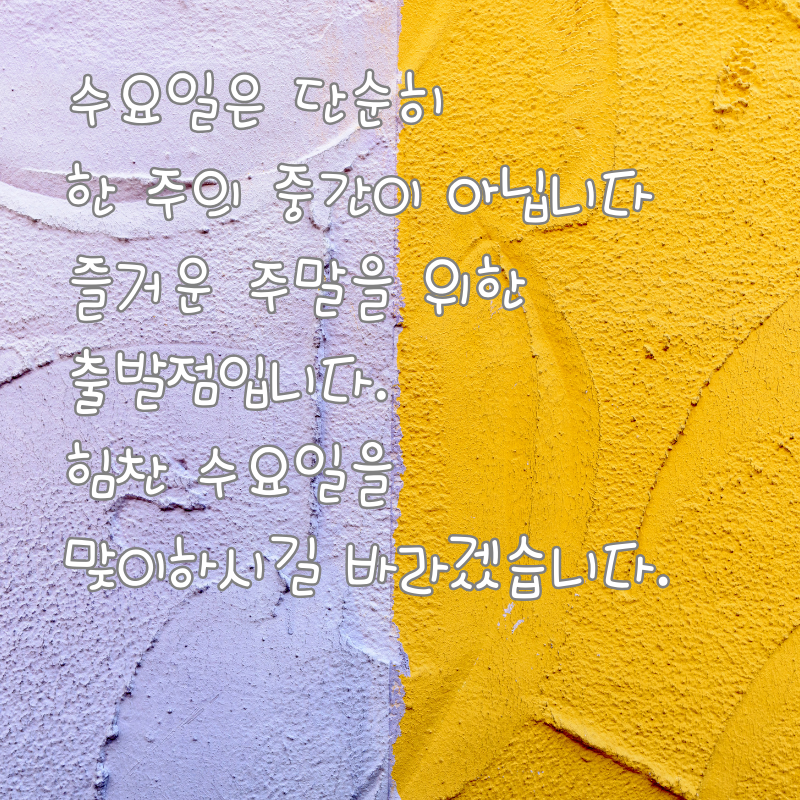 2. 수요일은 단순히 한 주의 중간이 아닙니다 즐거운 주말을 위한 출발점입니다. 힘찬 수요일을 맞이하시길 바라겠습니다.