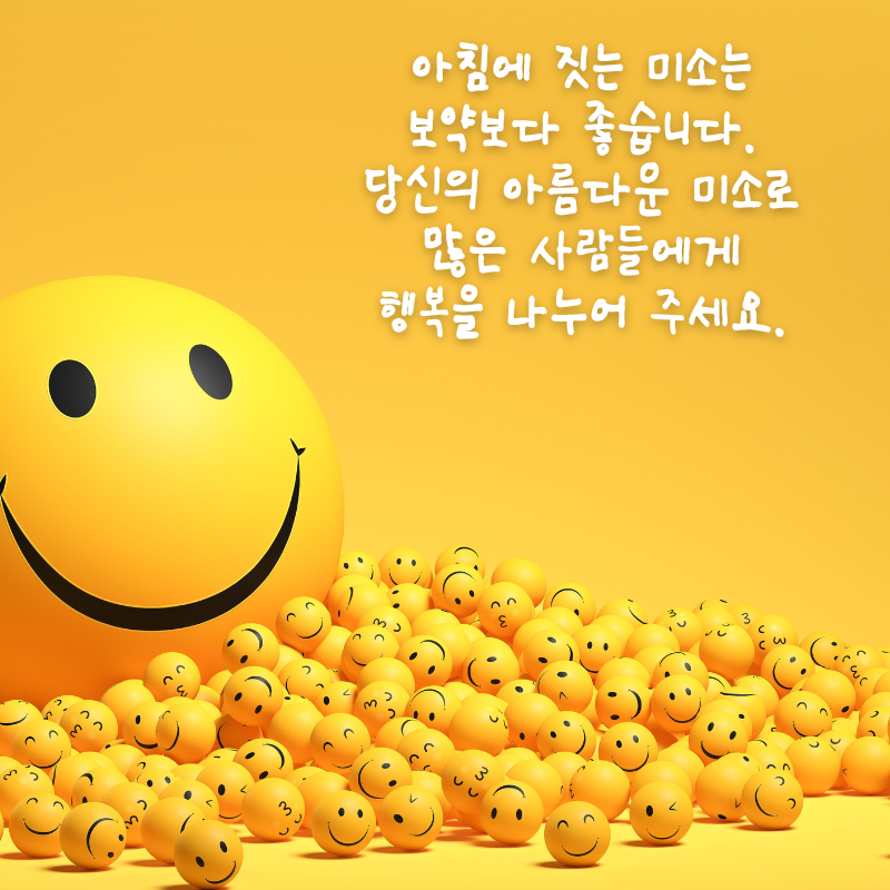 5. 아침에 짓는 미소는 보약보다 좋습니다. 당신의 아름다운 미소로 많은 사람들에게 행복을 나누어 주세요.