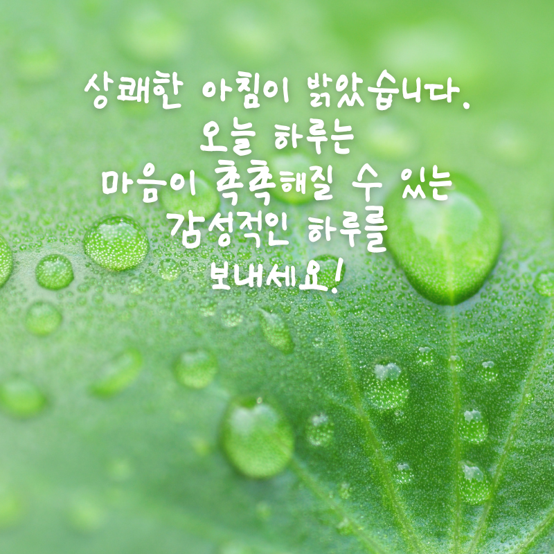 7. 상쾌한 아침이 밝았습니다. 오늘 하루는 마음이 촉촉해질 수 있는 감성적인 하루를 보내세요!