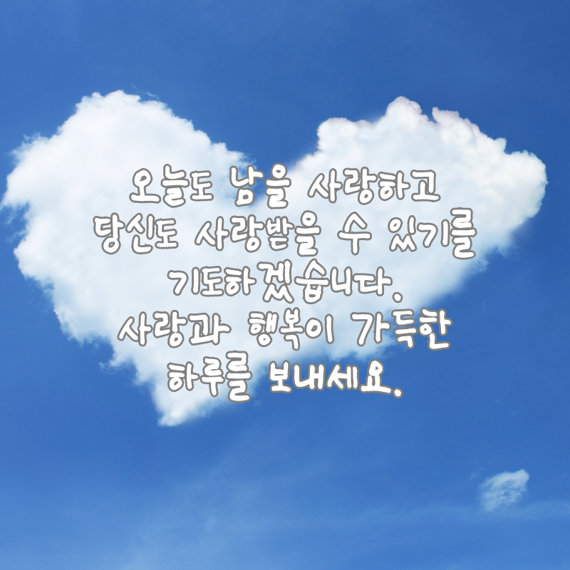 10. 오늘도 남을 사랑하고 당신도 사랑받을 수 있기를 기도하겠습니다. 사랑과 행복이 가득한 하루를 보내세요.