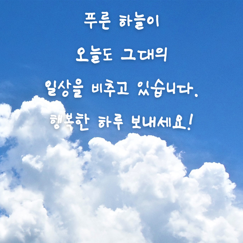 4. 푸른 하늘이 오늘도 그대의 일상을 비추고 있습니다. 행복한 하루 보내세요!
