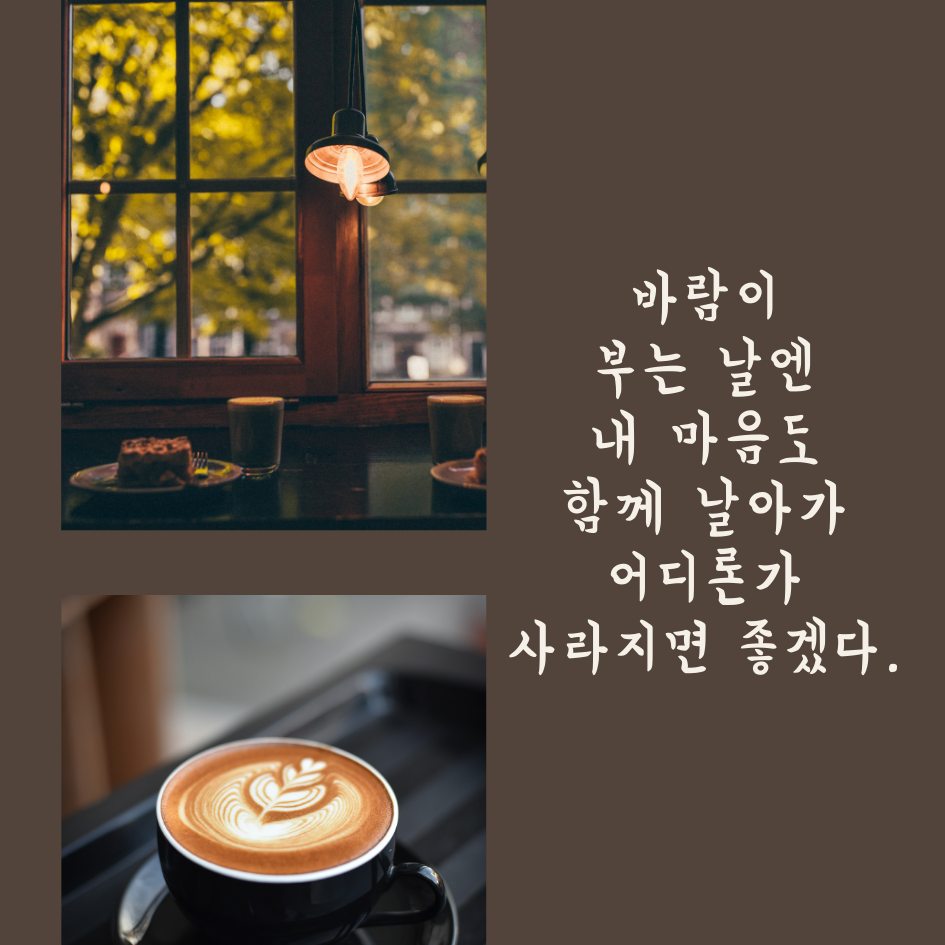 1. 바람이 부는 날엔 내 마음도 함께 날아가 어디론가 사라지면 좋겠다.