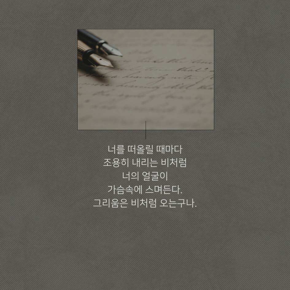 4. 너를 떠올릴 때마다 조용히 내리는 비처럼 너의 얼굴이 가슴속에 스며든다. 그리움은 비처럼 오는구나.