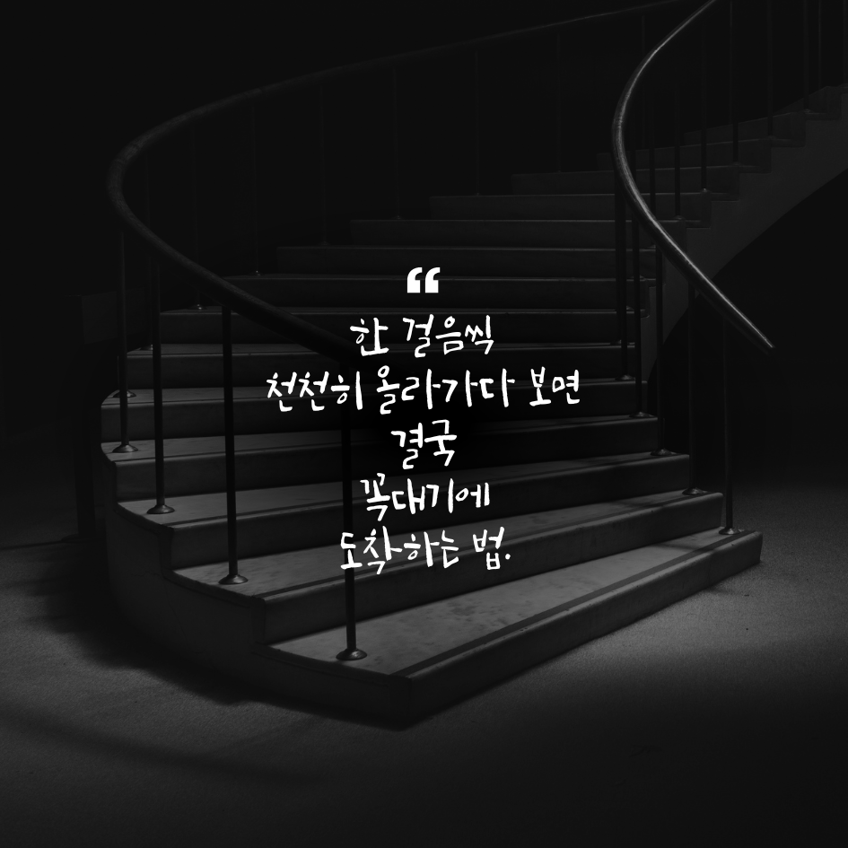 9. 한 걸음씩 천천히 올라가다 보면 결국 꼭대기에 도착하는 법.