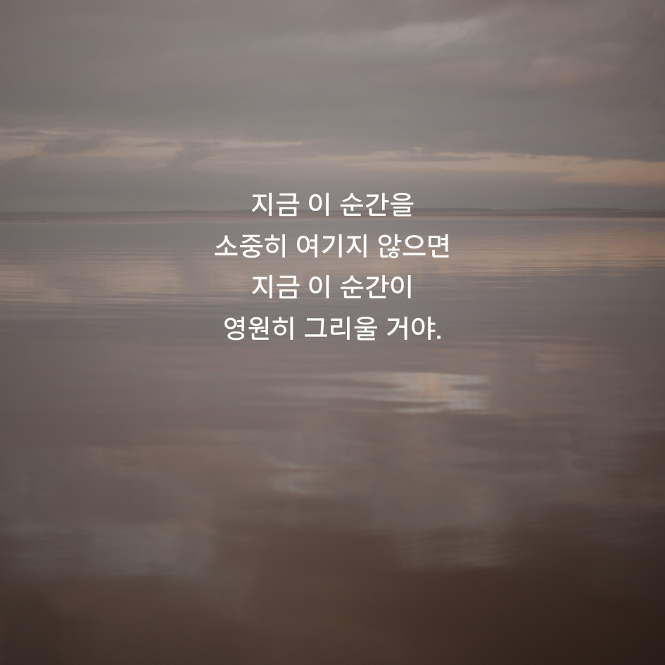 7. 지금 이 순간을 소중히 여기지 않으면 지금 이 순간이 영원히 그리울 거야.
