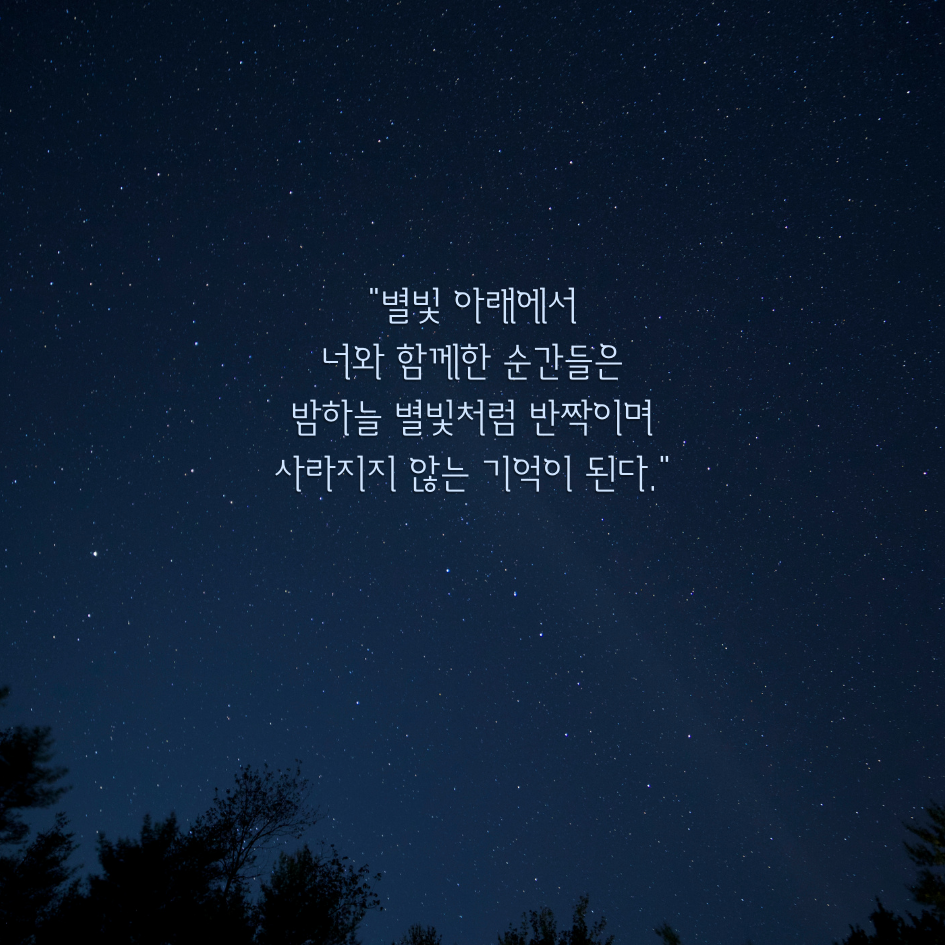 2. 별빛 아래에서 너와 함께한 순간들은 밤하늘 별빛처럼 반짝이며 사라지지 않는 기억이 된다.